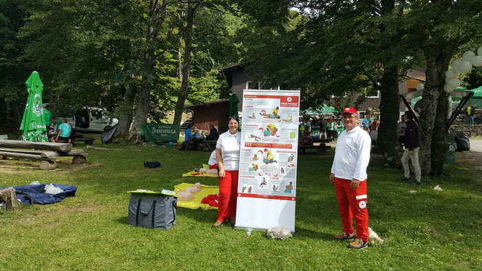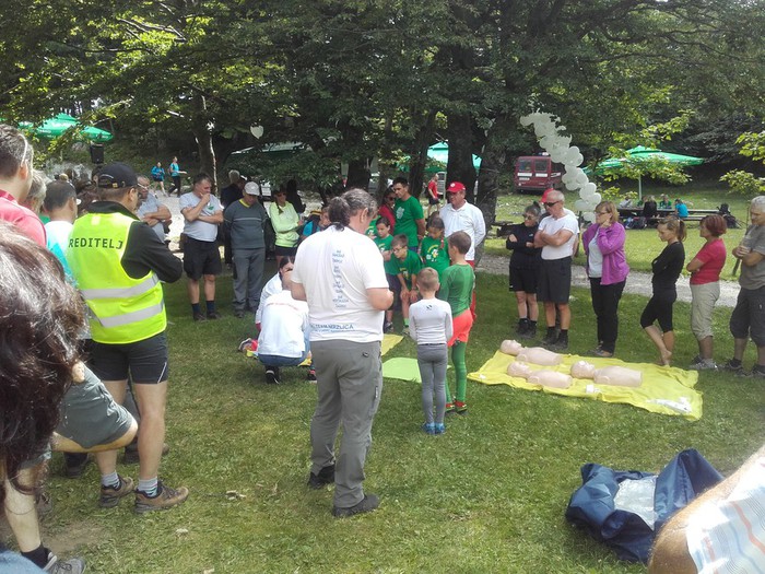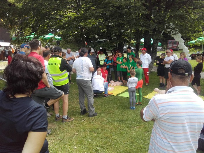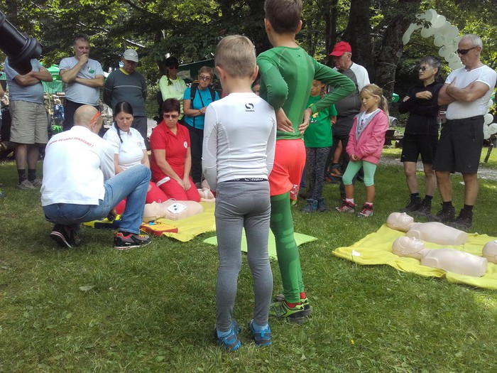 Člani ekip prve pomoči so v neposredni bližini Vojkove koče, kjer je od nedavnega nameščen nov defibrilator, ki so ga PD Postojna podarili zamejski prijatelji, postavili točko na kateri so izvajali prikaze temeljnih postopkov oživljanja ter uporabe defibrilatorja. Obiskovalcem in pohodnikom, ki so z zanimanjem spremljali dogajanje in svoje znanje nato tudi preizkusili, so bolničarji, ki soustvarjajo projekt "Ponosni, da lahko pomagamo!" s pomočjo katerega občane osveščajo o pomembnosti