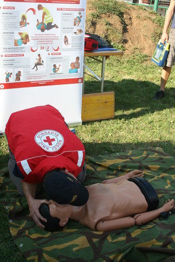 Ob svetovnem dnevu PRVE POMOČI je ekipa bolničarjev RKS-OZ Postojna-Pivka v Zagorju izvedla prikaz temeljnih postopkov oživljanja.